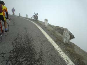 最初ならともかく、途中でこんな勾配があると普通なら絶対止まってしまう。ラルプデュエズがかわいく思えてしまう。