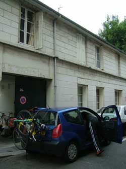 ゴール地点のFondという町の手前のホテルに、チームカーが止まっていたのでちょっと見学した。