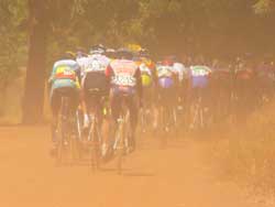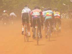 | Paのスタート地点には大勢の人達が集まってくれたが、残念ながら変更になってしまった。 | ペースが速く、集団はひたすら棒状 | ピストに突入! |
